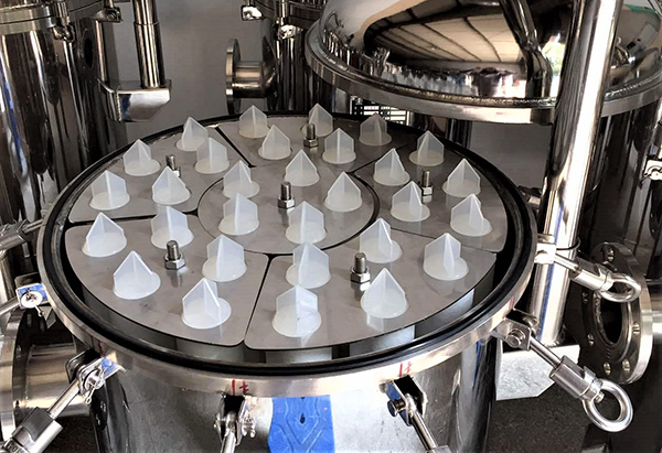 工作原理是一種壓力式過濾裝置。在密閉筒體內(nèi),是根據(jù)不同行業(yè)需求采用不同材質(zhì)濾芯作為過濾元件,垂直裝在濾板上組成,原液由進料口流入筒體,經(jīng)過每一支濾芯由外向內(nèi)排出,微小雜質(zhì)顆粒被攔截在濾芯表面。設計結構獨特,整個過程操作節(jié)能、密閉操作、精密澄清的固液分離設備,裝卸濾芯十分方便,濾筒清洗方便簡單。