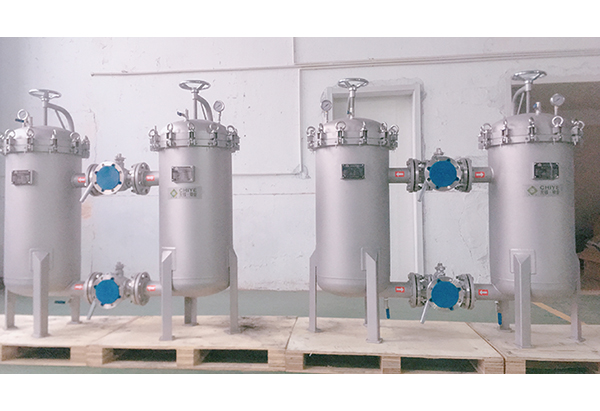 雙聯(lián)袋式過(guò)濾器簡(jiǎn)介 雙聯(lián)過(guò)濾器又稱并聯(lián)切換過(guò)濾器,它是由兩臺(tái)不銹鋼過(guò)濾器并聯(lián)而成,也可多臺(tái)互聯(lián)。采用兩個(gè)三通球閥,將兩個(gè)單筒過(guò)濾器組裝在一個(gè)機(jī)座上。清洗過(guò)濾器時(shí)不必停車,保證其連續(xù)工作,是不停車生產(chǎn)線過(guò)濾裝置較好的選擇。具有結(jié)構(gòu)新